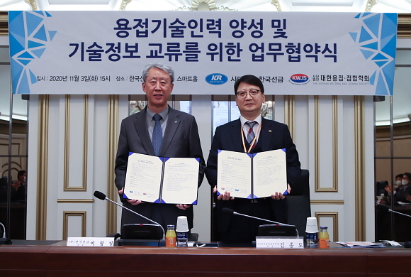 한국선급이 대한용접·접합학회와 최근 한국선급 본사에서 ‘용접 기술인력 양성과 기술 정보 교류를 위한 협약’을 체결했다고 9일 밝혔다.