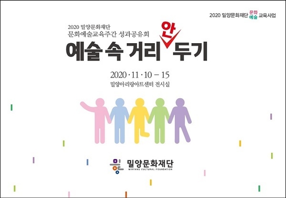 밀양문화재단은 2020 문화예술교육주간 성과공유회 '예술 속 거리 안 두기'를 오는 10일부터 15일까지 밀양아리랑아트센터 전시실에서 개최한다.