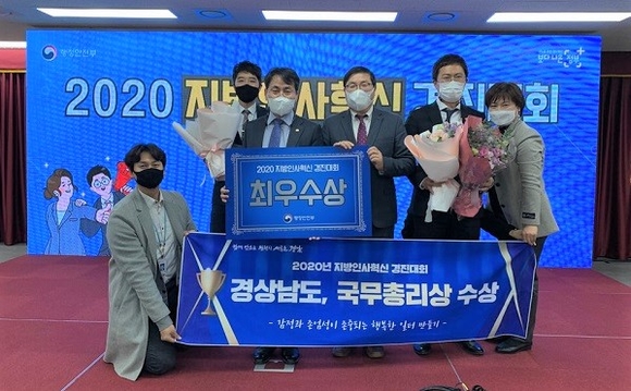 경남도가 10일 정부세종청사에서 열린 2020년 지방인사혁신 경진대회에서 최우수상(국무총리)을 수상했다.