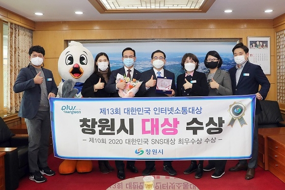 경남 창원시는 11일 서울 프레스센터에서 열린 2020 제13회 대한민국 인터넷소통대상 시상식에서 기초자치단체(시) 부문 대상을 수상했다고 밝혔다. 지난달 15일 제10회 2020 대한민국 SNS대상 기초자치단체 부문 최우수상을 받은 데 이은 쾌거다.