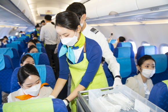 실습비행은 항공기(BX8910편)가 실제 이륙한 상태에서 2시간 30분가량 다양한 서비스와 안전 업무에 대한 실습 교육이 이뤄져 참여 학생들의 큰 호응을 얻었다.