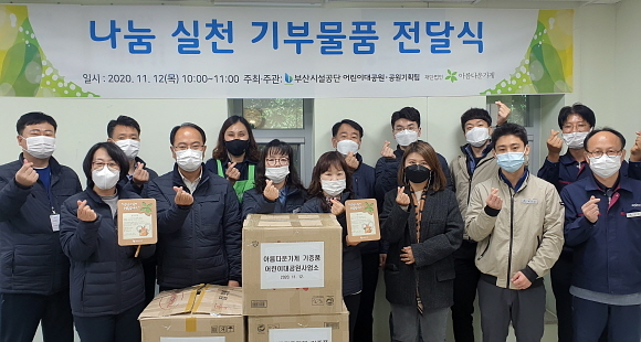 부산시설공단은 공단 공원관리처 직원들이 기증한 물품과 성금을 12일 오전 (재)아름다운가게 부산본부에 전달했다고 밝혔다.