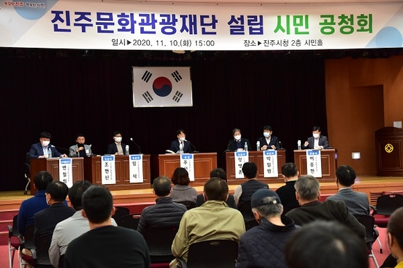 경남 진주시는 지난 10일 시청 2층 시민홀에서 진주문화관광재단 설립을 위한 시민공청회를 가졌다.