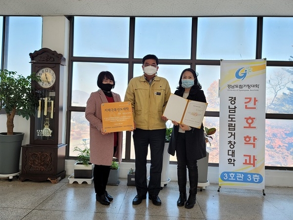경남 거창군 치매안심센터는 경남도립거창대학(이하 거창대학)을 치매극복선도대학으로 지정하고 현판 전달식을 가졌다고 13일 밝혔다.
