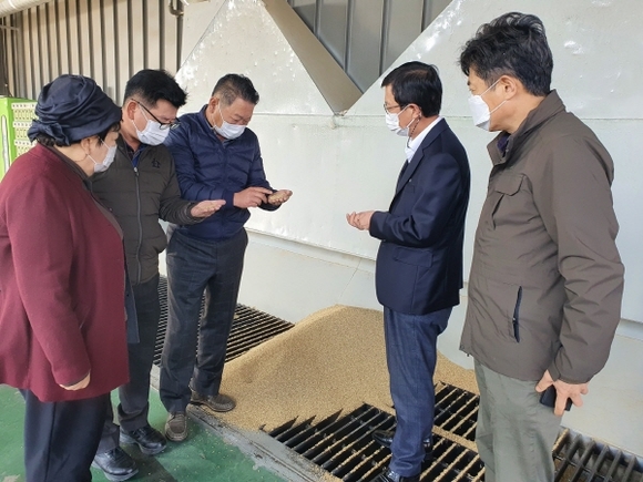 경남농협은 13일 공공비축 건조벼 매입 중인 진주진양농협 진주시농협미곡종합처리장을 방문해 올해 벼 생산 및 수매현황 등을 살피고 농업인과 관계자들의 노고를 격려하고 애로사항을 청취했다.