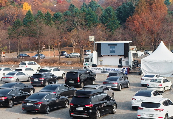 강의는 코로나19 예방책으로 참석자 간 접촉을 피하기 위해 강사 강연을 자동차 안에서 라디오로 듣는 ‘자동차 극장’ 방식으로 진행됐다. 이날 현장에는 차량 250대에 370여명이 참석했다.