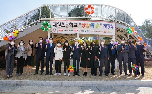 대원초 '상상의 숲'은 '학교 안 마을배움터' 시범사업 중 하나다. 지난해 10월 경남도와 도교육청, 한국토지주택공사(LH), NH농협은행 경남본부가 업무협약을 맺고 남해초등학교 '별별극장'과 함께 조성을 추진해왔다. 특히 LH는 '상상의 숲' 조성비용으로 3억 5천만 원을 기부했다.