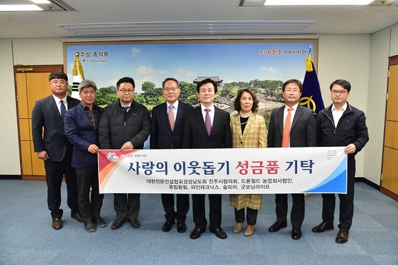 진주시 복지재단은 16일 오후 4시 진주시청 기업인의 방에서 성금·품 기탁식을 가졌다.