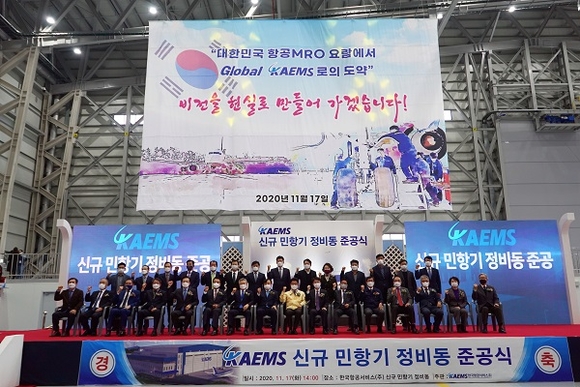 한국항공우주산업(KAI)의 자회사인 한국항공서비스(KAEMS)는 17일 경남 사천 본사에서 신규 민항기 정비동 준공식을 개최했다.