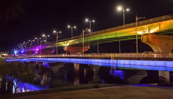 희망교 야간경관 조명은 내동면과 평거동을 연결하는 희망교 측면에 460여개의 LED 라인조명과 투광등을 설치해 남강물이 흘러가는 이미지와 석류꽃처럼 피어나는 꽃을 표현하여 남강의 아름다운 야경을 더욱 돋보이게 했다.