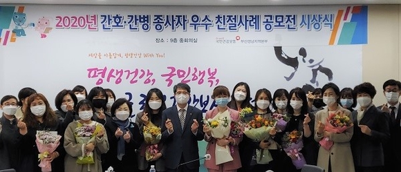 건보공단 부산경남지역본부는 최근 간호간병 종사자 우수 친절사례 공모전을 실시하고, 친절사례 30편에 대한 심사를 거쳐 최종 선정된 수상자에 대한 시상식을 가졌다.
