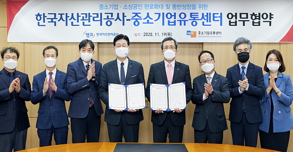 한국자산관리공사(캠코)가 19일 캠코 서울사옥에서 중소기업유통센터와 ‘중소기업·소상공인 판로 확대 및 동반성장 위한 업무협약’을 체결했다고 밝혔다.