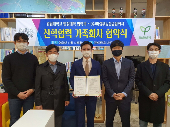 경남대학교 법학과는 지난 17일 ㈜바램부동산종합회사와 산학협력 가족회사 협약을 체결했다.