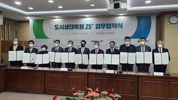경남 밀양시는 19일 서울시 한강홍수통제소에서 환경부를 포함한 8개 지방자치단체, 한국환경복원기술학회, 한국생태복원협회와 '도시생태복원 25+' 업무협약을 체결했다.