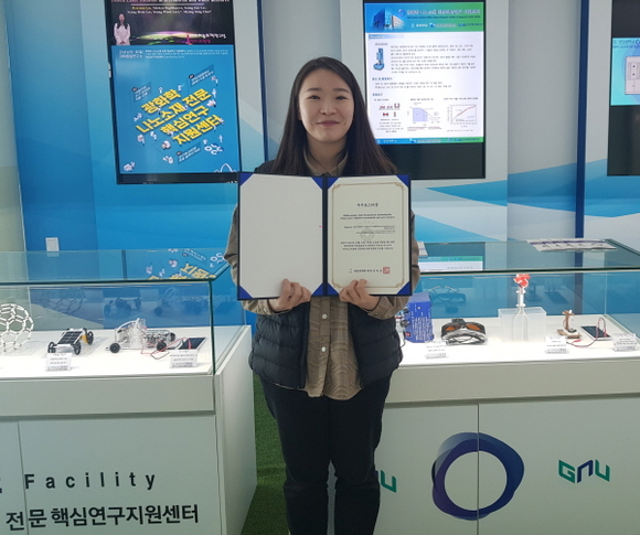 국립 경상대학교(GNU) 대학원 화학과에 재학 중인 이혜연(석사과정 1년, 지도교수 최명룡) 씨가 지난 10월 19일부터 21일까지 온라인으로 열린 ‘제126회 대한화학회 총회 및 추계학술발표회’에 참가, 우수포스터상을 수상했다.