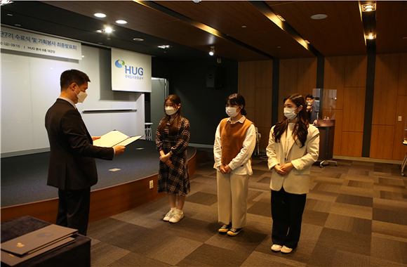 주택도시보증공사(HUG)가 지난 20일 아우르미 대학생 봉사단의 ‘기획 봉사활동 최종 발표회와 수료식’을 열었다고 24일 밝혔다.