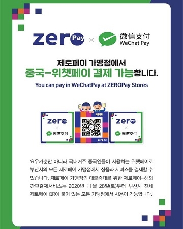 부산지역 내 제로페이 가맹점들은 별도 등록절차 없이 기존 제로페이 이용 방식과 동일하게 소비자가 위챗페이로 가맹점의 제로페이 QR코드를 인식하면 즉시 결제가 이뤄진다.