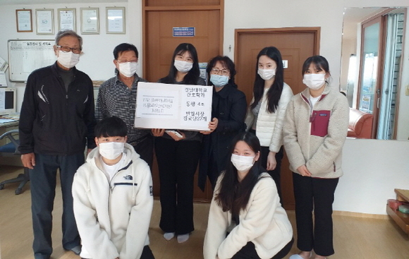 경남대학교 간호학과 봉사 동아리 ‘동행’은 최근 반월시장, 창포한백아파트, 희원무학, 구산음달, 수정여성 등 지역사회 경로당에 소독제와 마스크로 구성된 ‘2차 코로나 키트’ 총 178개를 전달했다.
