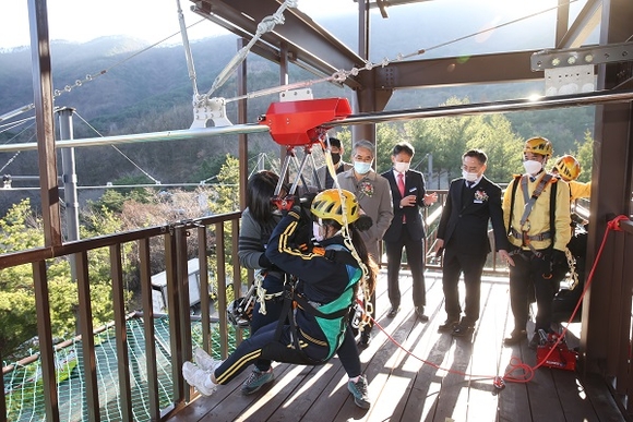 송순호 도의회 교육위원장은 “복합모험체험장의 좋은 자연환경에서 아이들이 스트레스 해소와 모험심을 키우고 안전교육의 산실이 되면 좋겠다“ 고 말했다.