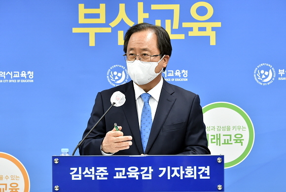김석준 부산시교육감은 이날 오후 3시 30분 시교육청 브리핑실에서 ‘코로나19 관련 긴급 기자회견’을 열고 위와 같이 밝히며 시민의 적극적인 협조를 당부했다.