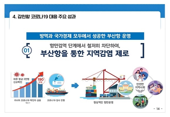 지난 6월 부산 감천항에는 러시아 국적 선사 내 선원이 최초로 코로나19 확진 판정을 받으며 지역사회 감염 우려가 상당히 커졌다. 이와 함께 항만 근로자들이 격리조치에 들어가 생업이 중단되며 주변 상권의 매출 감소까지 우려되는 상황에 처했다.