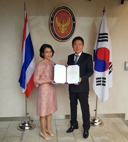 이날 태국 정부를 대신해 임명장을 전달한 롬마니 카나누락 주한태국대사는 “그동안의 내정자 신분으로 작년 한·아세안 특별정상회의때 태국 투자환경 설명회에 부울경의 경제인 초청 등 태국 산업을 알리는데 앞장섰으며, 한국·태국 양국의 문화, 체육, 경제등 다방면으로 협력해 준 것에 감사하다”고 전했다.