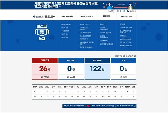 부산시가 코로나19 감염병에 대한 정보를 한눈에 찾을 수 있도록 ‘부산시 코로나19 안내 홈페이지’를 전면 개편한다고 30일 밝혔다.
