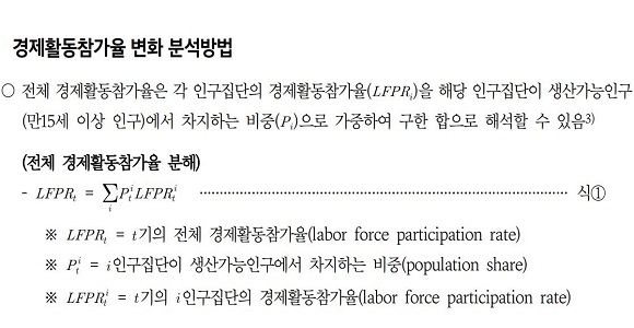 그러면서 그는 “15~29세의 청년층의 경우 학업 종사, 취업 준비 등 개인 역량을 축적하려는 경향이 나타나기에 청년층의 고학력화 현상을 취업 기회와 생산 확대로 연결하려는 정책이 필요하다”고 제안했다. 또한 “30~59세 중장년층은 중·저숙련 제조업 일자리가 줄어드는 일자리 양극화가 경제활동 참가율을 낮추는 요인이기에 직업훈련 체계 재정비와 인려 활용 확대 방안이 필요하다”며 “60세 이상 고령층의 경제활동 참여는 증가추세에 있으나 향후 계속고용 촉진과 재취업 활성화를 통해 노동공급 기반 강화가 필요하다”고 주장했다.