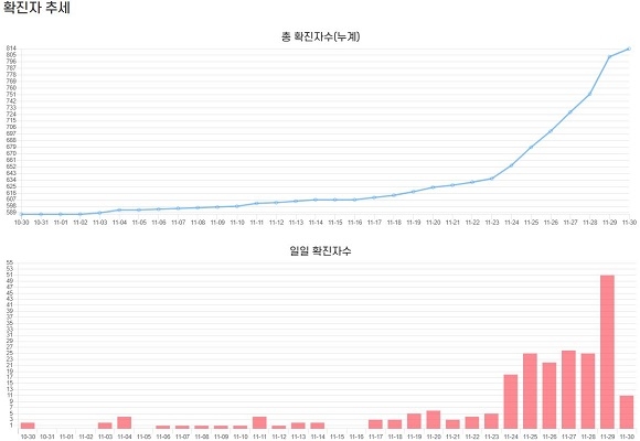 808번 확진자는 788번 환자의 지인으로 접촉에 의해 감염됐다. 788번 환자의 경우 아직 감염 원인이 파악되지 않고 있는 ‘깜깜이 환자’로 분류된다. 809번 확진자는 초연음악실 관련 확진자로 분류되는 727번 환자와 접촉해 감염된 것으로 파악된다.