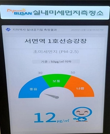 부산시가 도시철도를 이용하는 시민들에 쾌적한 환경을 제공하고 미세먼지 위협을 제거하기 위해 도시철도 1~4호선 내 모든 역에 ‘실내 공기질 자동측정기’를 설치했다고 1일 밝혔다.