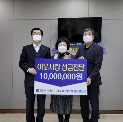 NH농협은행 경남영업부는 1일 창원시 신촌동에 위치한 선린복지재단에 이웃사랑 성금 1000만원을 전달했다.