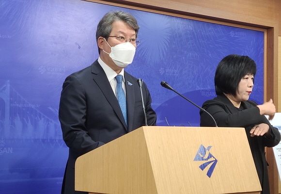 변성완 부산시장 권한대행은 오늘 오전 11시 시청 브리핑실에서 기자회견을 열고 2030 엑스포 유치 로드맵 방향에 대해 ▲차별화 전략 ▲범정부 추진체계 구축 ▲입지 경쟁력 확보 ▲가덕신공항 건설을 꼽았다.