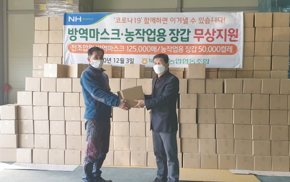 경남 북창원농협이 전 조합원에게 방역마스크 12만 5000매(1인당 50매)와 농작업용 장갑 5만켤레(1인당 20켤레)를 무상 제공했다.
