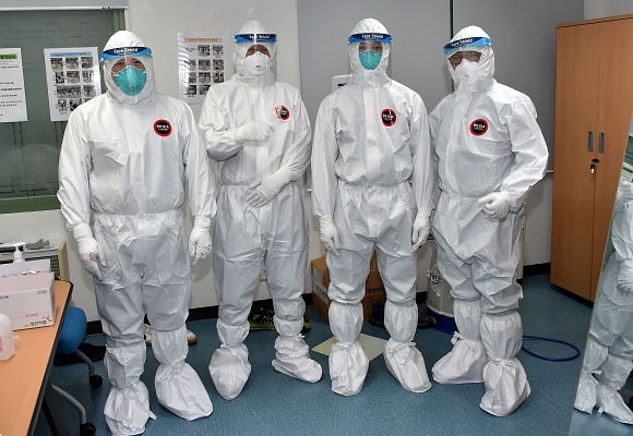 병원시험장 감독관은 더 높은 방호가 가능한 전신보호복(우주복 형태)과 덧신 등으로 구성된 레벨D 개인보호구를 착용했다. 이 보호구는 착·탈의에 대한 체력 소모가 큰 것으로도 알려졌다.