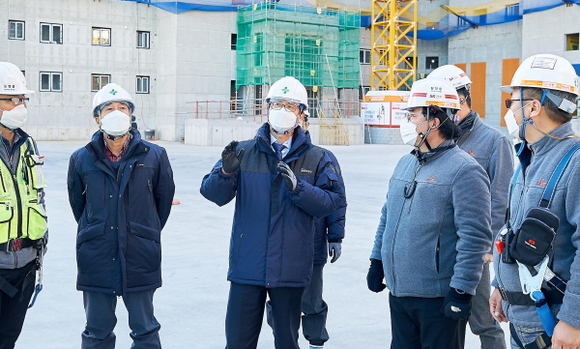 겨울철 건설현장 재해예방을 위해 안전보건공단이 4일 인천광역시 소재 아파트 신축현장을 찾아 안전점검을 실시했다. 박두용 공단 이사장과 점검반은 이날 동절기 발생하기 쉬운 추락, 화재, 질식 등 위험 요인을 중점 점검했다.