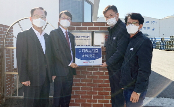 BNK경남은행은 4일 함안군 파수농공단지에 소재한 ㈜오양기업과 대한강관㈜을 ‘유망중소기업’에 선정했다고 밝혔다. 선정 기업들은 유망중소기업 심사에서 안정적인 매출실적과 뛰어난 기술력 등을 높이 평가받았다.