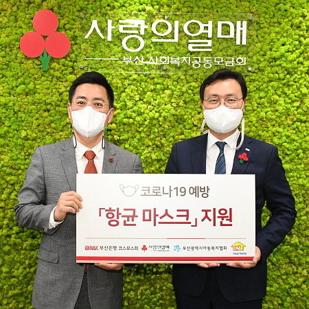 BNK부산은행이 9일 임직원 기부모임인 ‘코스모스회’에서 부산지역 아동시설에 항균 마스크 5000장을 기증했다고 밝혔다.