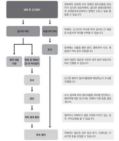 해당 보고서는 ▲일터 괴롭힘 대응 가이드라인 연구 ▲일터 괴롭힘 대응 절차 ▲영화현장 일터 괴롭힘 체크리스트 ▲외국의 가이드라인 사례로 구성됐다.