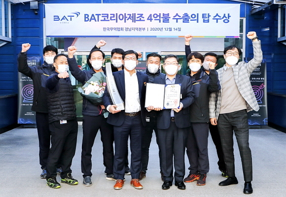 앞서 2년 전 ‘3억불 수출의 탑’을 받았던 BAT코리아는 올해 수출액이 전년대비 13% 성장한 4억 900여만 달러를 기록해 이번에 ‘4억불 수출의 탑’을 받게 됐다.