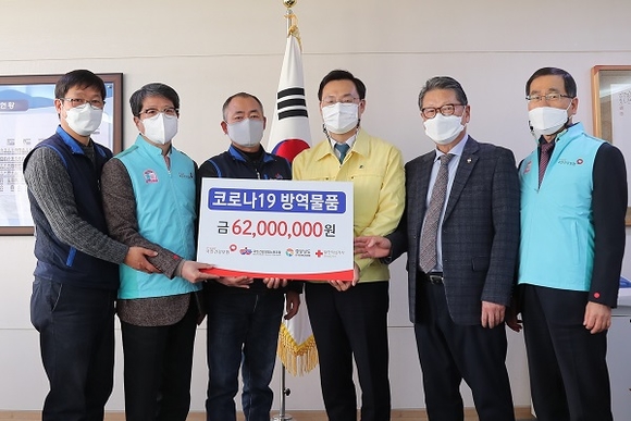 국민건강보험공단은 16일 국민건강보험공단노동조합과 함께 경남도청에서 '코로나19 극복을 위한 방역물품 구입비용' 기탁식을 가졌다.