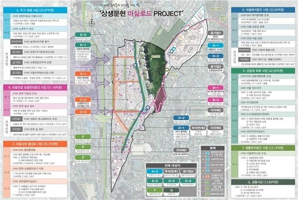 또 남구 문현동은 ‘생생문현, 마실로드, 프로젝트’ 사업에 총 2646억원을 들여 주거재생, 마을복지, 골목상권 활성화 등으로 지역 곳곳에 활력을 불어넣는다는 계획이다. 사업은 주거환경 개선을 위해 ▲한국토지주택공사(LH) 총괄 공공주택 960호 공급 ▲경사형 엘리베이터 설치 ▲협업 플랫폼 ▲공동체 플랫폼 ▲복지 플랫폼 ▲문현 골목 마실로드 등을 조성해 상권 및 공동체 회복에 나선다.