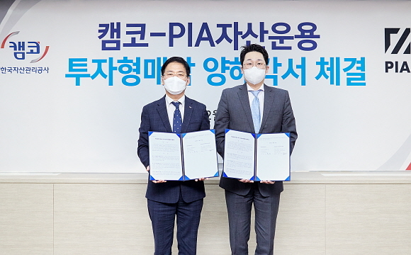 한국자산관리공사(캠코)가 지난 21일 캠코 서울사옥에서 매수의향서(LOI)를 제출한 PIA 자산운용사 등과 함께 ‘국세물납증권 투자형 매각 양해각서’를 체결했다고 22일 밝혔다.