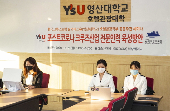 와이즈유(영산대학교) 호텔관광학부 국제크루즈융합전공은 지난 21일 ‘포스트 코로나, 크루즈산업 전문인력 육성방안’을 주제로 온라인 세미나를 진행했다.
