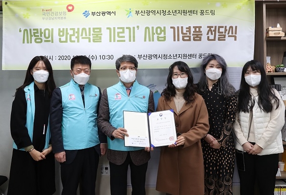 국민건강보험공단 부산경남지역본부는 23일 부산시청소년지원센터에서 '사랑의 반려식물 기르기' 사업 기념품 전달식을 가졌다.