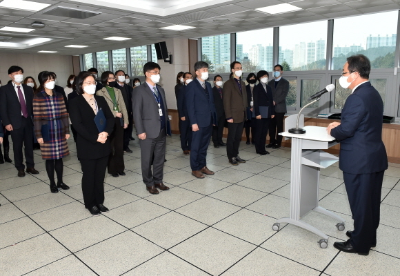 김석준 시교육감은 이날 “부산 교육의 도약을 위해선 간부의 역할이 무엇보다 중요하다”며 “직원이 즐거운 마음으로 자신의 역할에 최선을 다할 수 있도록 민주적이며 합리적인 리더십을 발휘해 달라”고 당부를 전했다.
