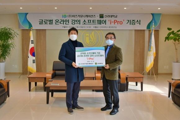 신라대학교는 지난 23일 오후 2시 대학본부동 6층 총장접견실에서 ㈜이즈커뮤니케이션즈와 ‘강의 콘텐츠 저작 소프트웨어 기증식’을 개최했다고 24일 밝혔다.