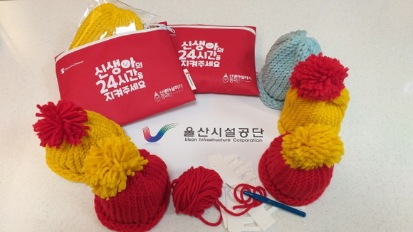 울산시설공단은 지난 28일 임직원의 재능기부 봉사활동으로 ‘신생아살리기 캠페인’에 참여, 제작한 신생아용 모자 190개를 국제 아동구호단체 ‘세이브더칠드런’에 전달했다.