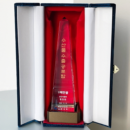 삼진식품이 최근 해양수산부(해수부)의 ‘수출 공로탑’을 수상했다고 29일 밝혔다. 이 공로탑은 연간 100만 달러 이상의 수산물을 수출한 기업에 수여하는 상이다.