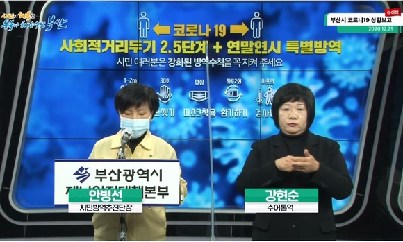 안병선 시민방역추진단장은 “금일 확진자 가운데 1759번과 1776번 두 명은 노인복지시설인 A모 센터에 근무하는 분들로 이에 대해 해당 복지시설의 조사를 진행할 계획이다. 또한 1772번과 1773번 두 명은 또 다른 노인복지시설인 B모 센터 입소자들로 이 시설에 대해서도 오늘 조사를 진행하고 있다”고 긴박한 상황을 설명하며 “지난 27일 오후 1708번, 1275번 두 명의 환자분이 숨을 거둬 사망자 누계는 47명이다. 현재 부산지역 내 위중증 환자로 분류되는 분은 12명이며 자가격리에 들어간 사람은 접촉자 3723명, 해외입국자 3036명 총 6759명”이라고 설명했다.