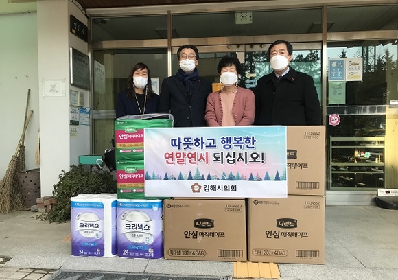 김해시의회는 연말을 맞아 29일 관내 사회복지시설을 방문해 위문품을 전달하고 따뜻한 나눔의 사랑을 실천했다.